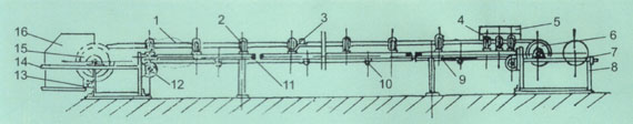 3 槽形調(diào)心托輥 7 螺旋拉緊裝置 11 中間架 15 傳動(dòng)滾筒(電動(dòng)滾筒)
